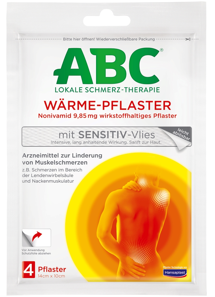 Bestellen Sie jetzt das ABC Wärme-Pflaster mit Sensitiv-Vlies und erleben Sie selbst die wohltuende Wirkung der Wärme!