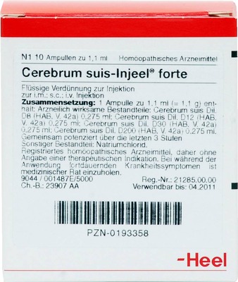 - CEREBRUM SUIS Injeel forte Ampullen sind in der Regel gut verträglich. In seltenen Fällen können allergische Reaktionen auftreten. Bei anhaltenden oder unklaren Beschwerden sollte ein Arzt aufgesucht werden.