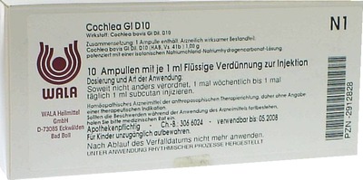 Jede Packung enthält 10 Ampullen mit einer gebrauchsfertigen Lösung zur Injektion oder Einnahme. COCHLEA GL D ist rezeptfrei in Ihrer Online-Apotheke erhältlich.