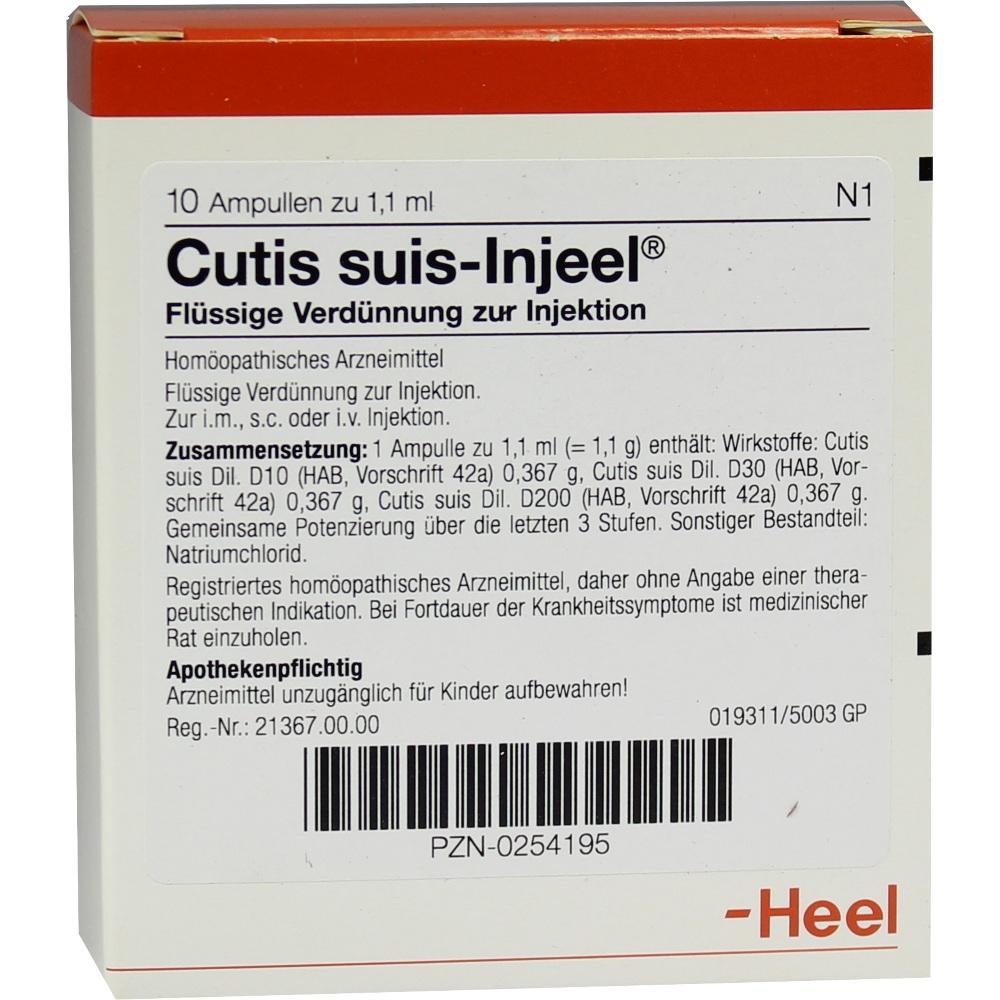 - CUTIS suis Injeel Ampullen sind apothekenpflichtig. Bitte lassen Sie sich vor der Anwendung von einem Arzt oder Apotheker beraten.