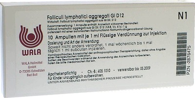 Folliculi lymphatici aggregati GL D 12 Ampullen enthalten den Wirkstoff Folliculi lymphatici aggregati in der homöopathischen Potenz D12. Die weiteren Bestandteile sind Natriumchlorid und Wasser für Injektionszwecke.