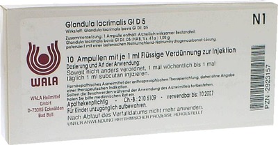 - Glandula Lacrimalis GL D 5 Ampullen sind apothekenpflichtig und sollten außerhalb der Reichweite von Kindern aufbewahrt werden.