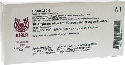 Hepar Gl D4 Ampullen sind ein homöopathisches Arzneimittel, das zur Anregung der Leberfunktion angewendet wird. Die enthaltene Substanz Hepar sulfuris (Kalkschwefelleber) ist bekannt für ihre entgiftenden und stoffwechselanregenden Eigenschaften. In der Homöopathie wird Hepar sulfuris traditionell bei verschiedenen Beschwerden eingesetzt, die mit einer Überlastung der Leber in Verbindung stehen.