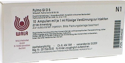 - Pulmo Gl D5 Ampullen sind ein homöopathisches Arzneimittel und ersetzen nicht die Behandlung durch einen Arzt oder Heilpraktiker.