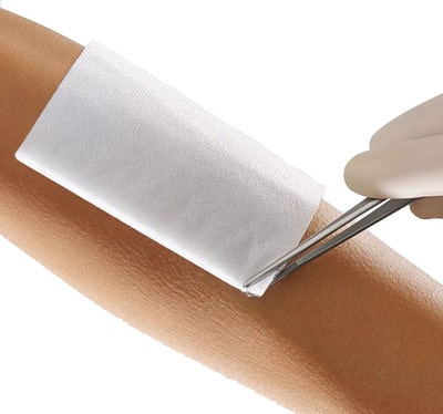 - Legen Sie die Kompresse auf die Wunde, sodass sie diese vollständig bedeckt.