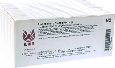 Die Dosierung und Anwendungsdauer von STROPHANTHUS/NICOTIANA comp. Ampullen sollte individuell auf Ihre Bedürfnisse abgestimmt werden. Bitte halten Sie sich an die Empfehlungen Ihres Arztes oder Heilpraktikers oder beachten Sie die Packungsbeilage.