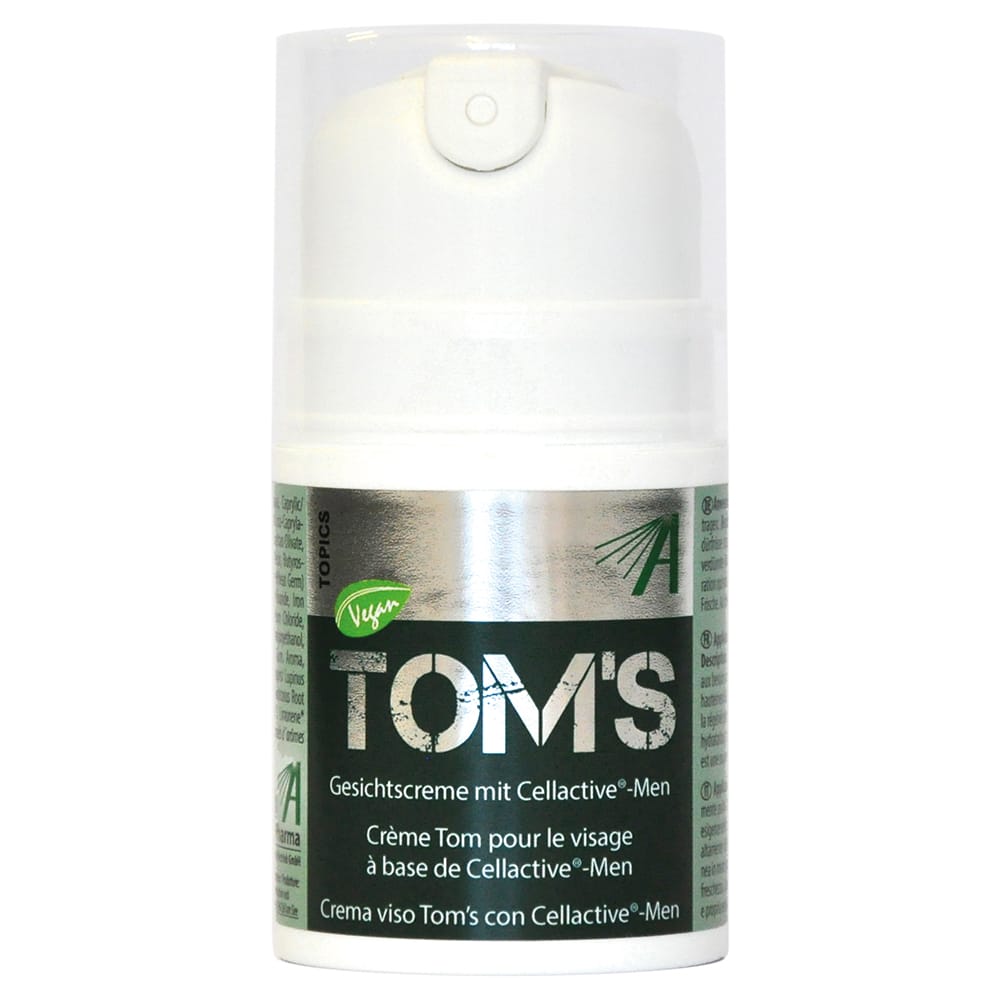- Tragen Sie eine kleine Menge TOM’S Gesichtscreme auf Gesicht, Hals und Dekolleté auf.
