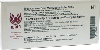 Trigonum vesicae et Musculus sphincter GL D5 ist ein homöopathisches Arzneimittel ohne spezifische Indikation. Bei anhaltenden, unklaren oder neu auftretenden Beschwerden sollte ein Arzt oder Heilpraktiker aufgesucht werden.