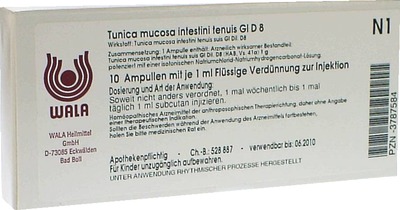 Wirkstoff: Tunica mucosa intestini tenuis Gl D8 dil. (HAB, Vorschrift 44) 2 ml.