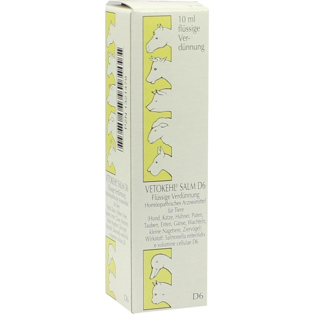 VETOKEHL SALM. D 6 Tropfen vet. enthalten den homöopathisch aufbereiteten Wirkstoff *Salmonella enterica subsp. enterica*. In der Homöopathie wird dieser Stoff traditionell zur Unterstützung des Immunsystems und zur Anregung der körpereigenen Abwehrkräfte eingesetzt. Das Präparat zielt darauf ab, das Gleichgewicht im Organismus Ihres Tieres wiederherzustellen und somit dessen Vitalität und Lebensfreude zu fördern. Die Tropfen sind leicht zu verabreichen und können sowohl bei akuten als auch bei chronischen Beschwerden eingesetzt werden.