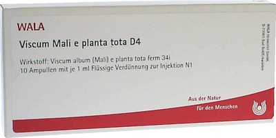- VISCUM MALI e planta tota D 4 Ampullen dürfen nicht angewendet werden bei bekannter Überempfindlichkeit gegen Mistelpräparate oder einen der sonstigen Bestandteile.
