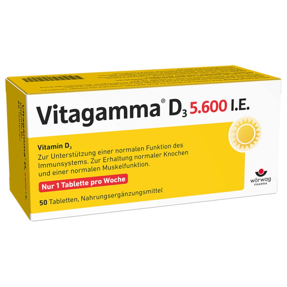 Hinweis: Nahrungsergänzungsmittel sind kein Ersatz für eine ausgewogene und abwechslungsreiche Ernährung sowie eine gesunde Lebensweise. Bitte konsultieren Sie Ihren Arzt oder Apotheker, wenn Sie Bedenken haben oder weitere Fragen zur Einnahme von Vitagamma D3 5.600 I.E. haben.