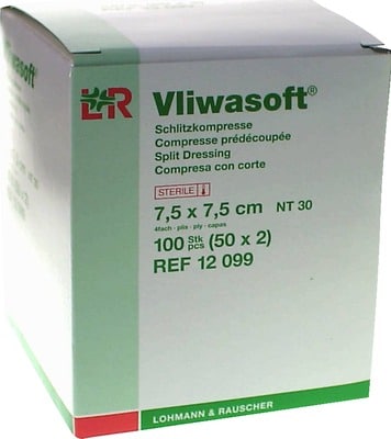 VLIWASOFT Schlitzkompressen 7,5×7,5 cm steril 4l.