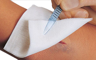 - Legen Sie die VLIWASOFT Vlieskompresse auf die Wunde.
