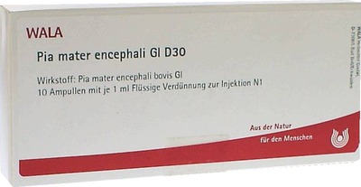 WALA Pia mater encephali GL D30 ist ein homöopathisches Arzneimittel der WALA Heilmittel GmbH. Es wird nach anthroposophischen Gesichtspunkten hergestellt und enthält als Wirkstoff eine potenzierte Zubereitung aus Pia mater encephali (weiche Hirnhaut) vom Rind. Die Potenzierung D30 bedeutet, dass der Ausgangsstoff in 30 Schritten jeweils im Verhältnis 1:10 verdünnt und verschüttelt wurde. Dieser Prozess soll die innewohnenden Kräfte des Ausgangsstoffes freisetzen und für den Körper nutzbar machen.